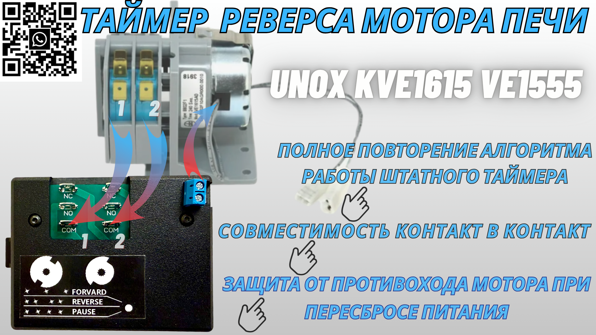 Переключатель реверса мотора конвекции Unox 240 секунд. 2 кулачка, 230В, 50/60Гц. KVE1615A KVE1555A, аналог на современной элементной базе с защитой мотора от включения реверса в режиме противохода, в комплекте инструкция по переподключению.